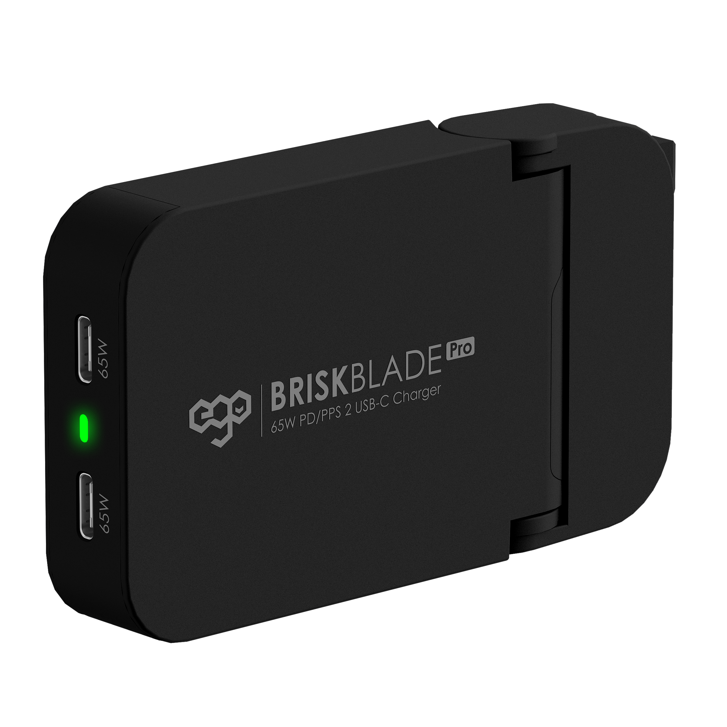 EGO Fold WORLD SLIMMEST Ultra Slim Wall Charger 65W Brisk Blade Pro with GaN Technology, 2 USB-C Ports -Black
