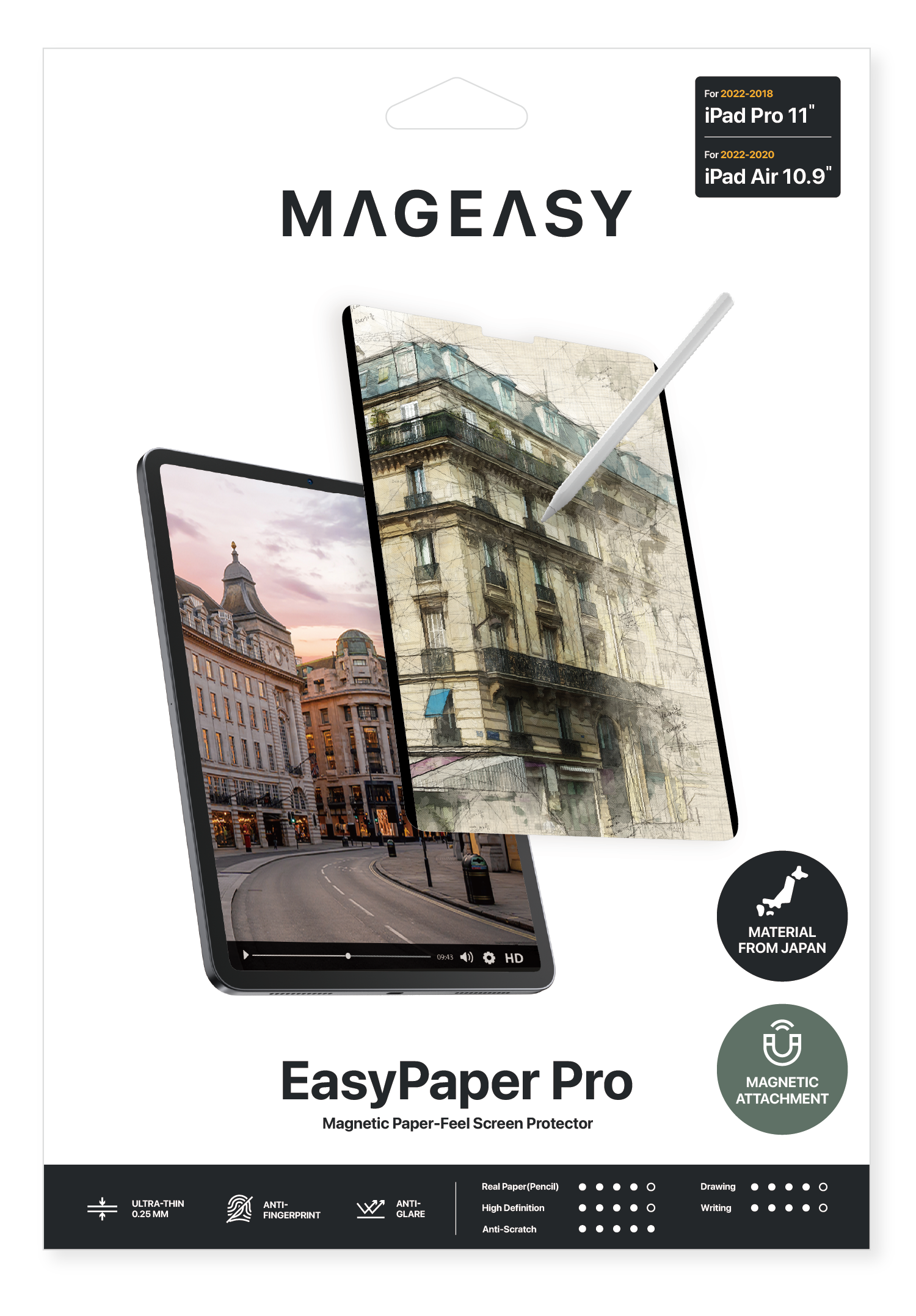 MAGEASY EasyPaper Pro Magnetic Paper-Feel iPad Screen Protector For iPad Air 10.9″ – switch easily between drawing with a paper feel or viewing with HD clarity