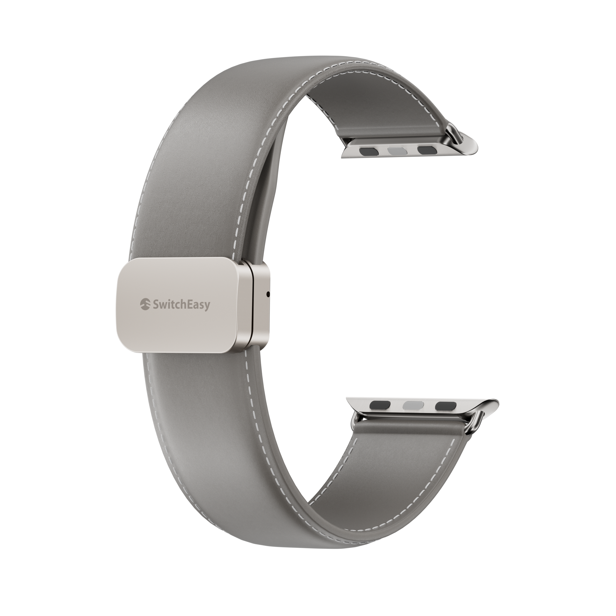 SwitchEasy Classic Genuine Leather Watch Band with Magnetic Lock for Apple Watch S4~S9 42/44/45/49mm-Gray