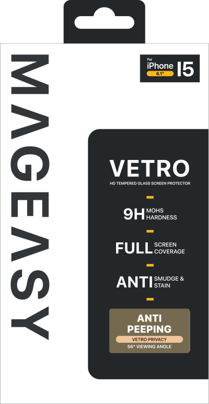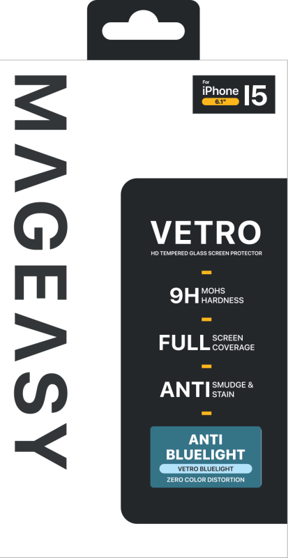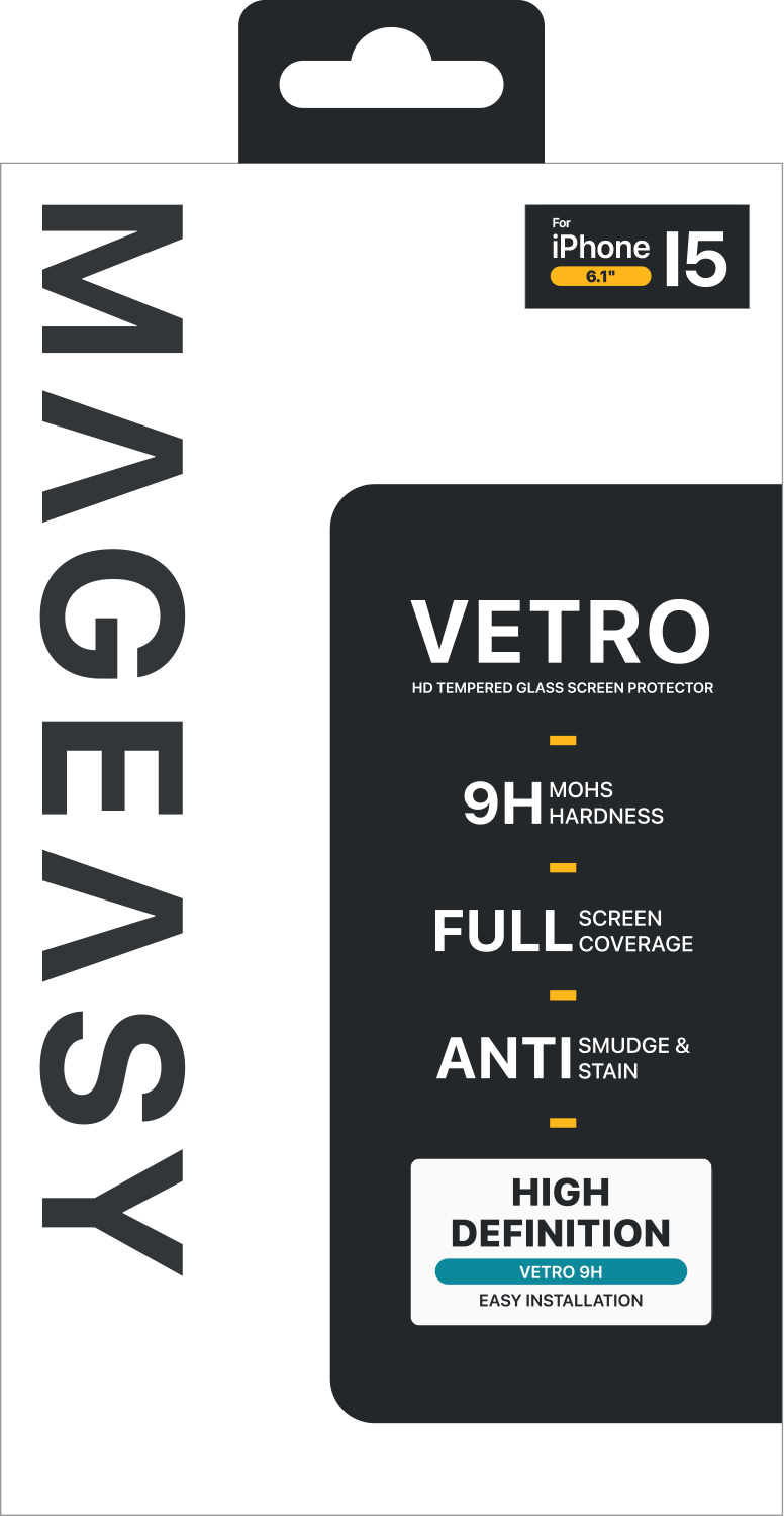 Vetro 9H Tempered Glass Screen Protector For iPhone 15, Premium Material, Ultra-clear HD visuals and exceptional transparency, Oleophobic screen coating, Rounded edges design for full coverage